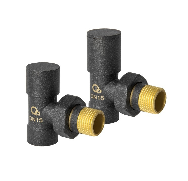 Sada úhlových radiátorových ventilů Diamond je estetické a funkční řešení pro připojení koupelnového nebo designového radiátoru k ústřednímu topení. Díky kompaktnímu designu a módnímu barevnému provedení antracit, dokonale se hodí do moderních interiérů.