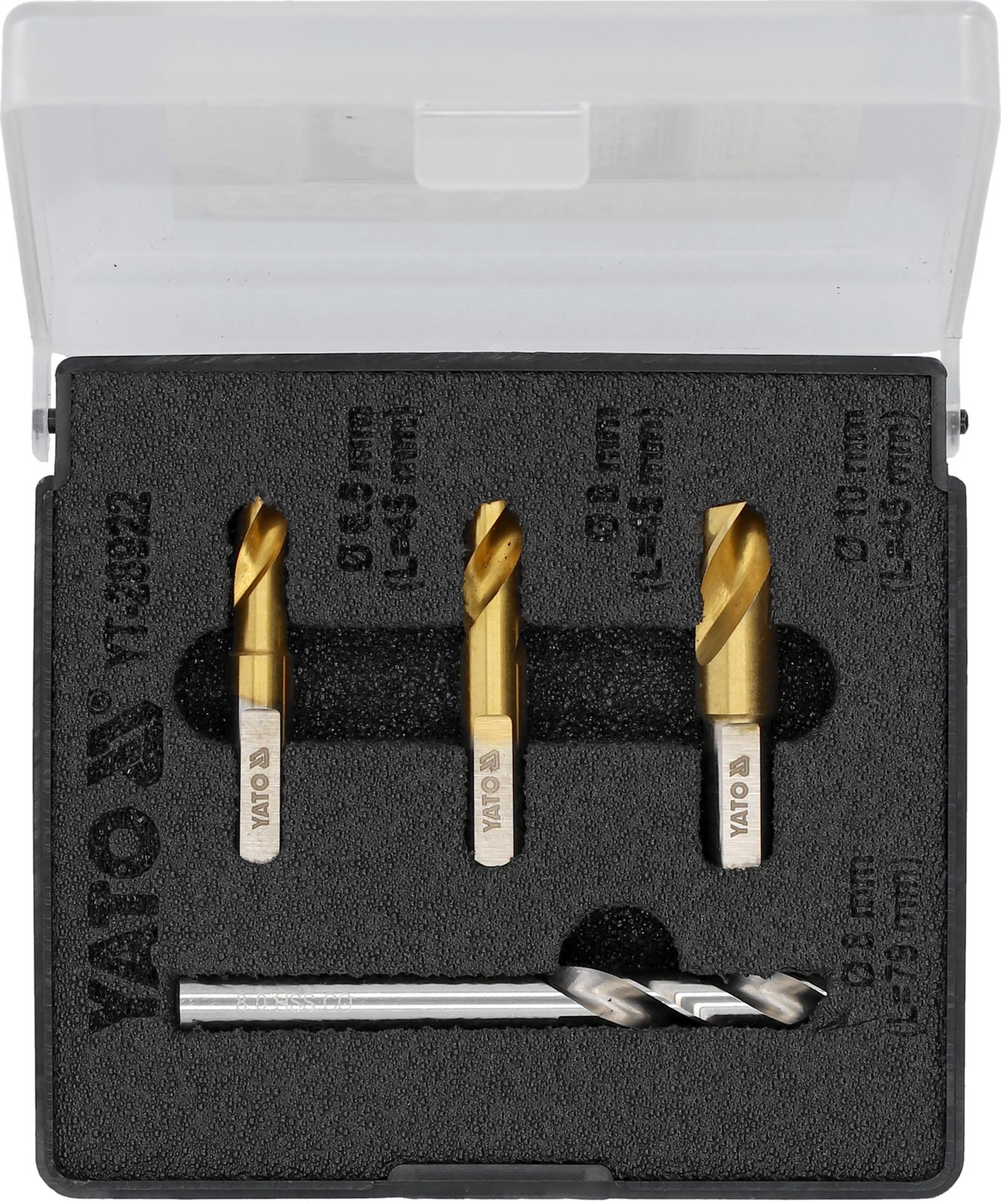 - Vrtáky z kobaltové rychlořezné oceli pokryté titanem.Profesionální sada vrtáků Yato YT-28922 je nástroj určený pro přesné odstranění bodových svarů plechů automobilů a jiných kovů.