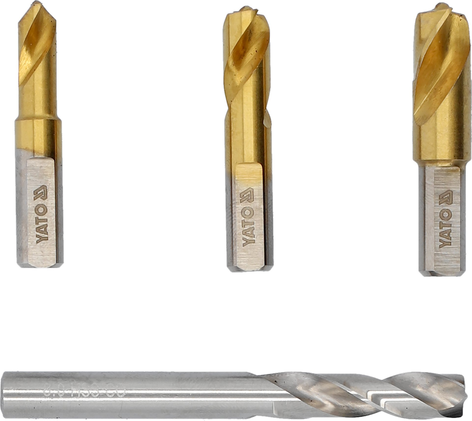 - Sada vrtáků pro bodové svařování Yato YT-28922 (5 ks) o průměru 6,5 mm, vyrobená z odolné HSS oceli s titanovým povlakem. Oboustranné břity zajišťují přesnost a dlouhou životnost. Ideální pro mechaniky a plechaře.