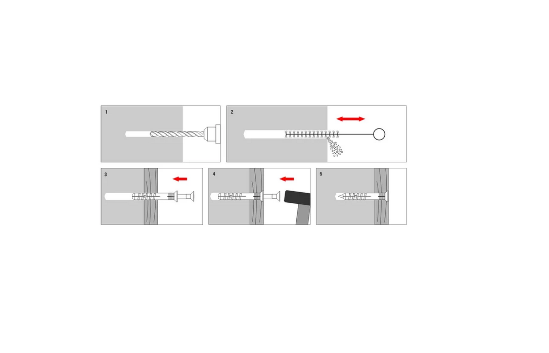 Typy podkladů, na které lze rychlomontážní hmoždinku SM instalovat: prostý beton, plná keramická cihla, plná silikátová cihla.