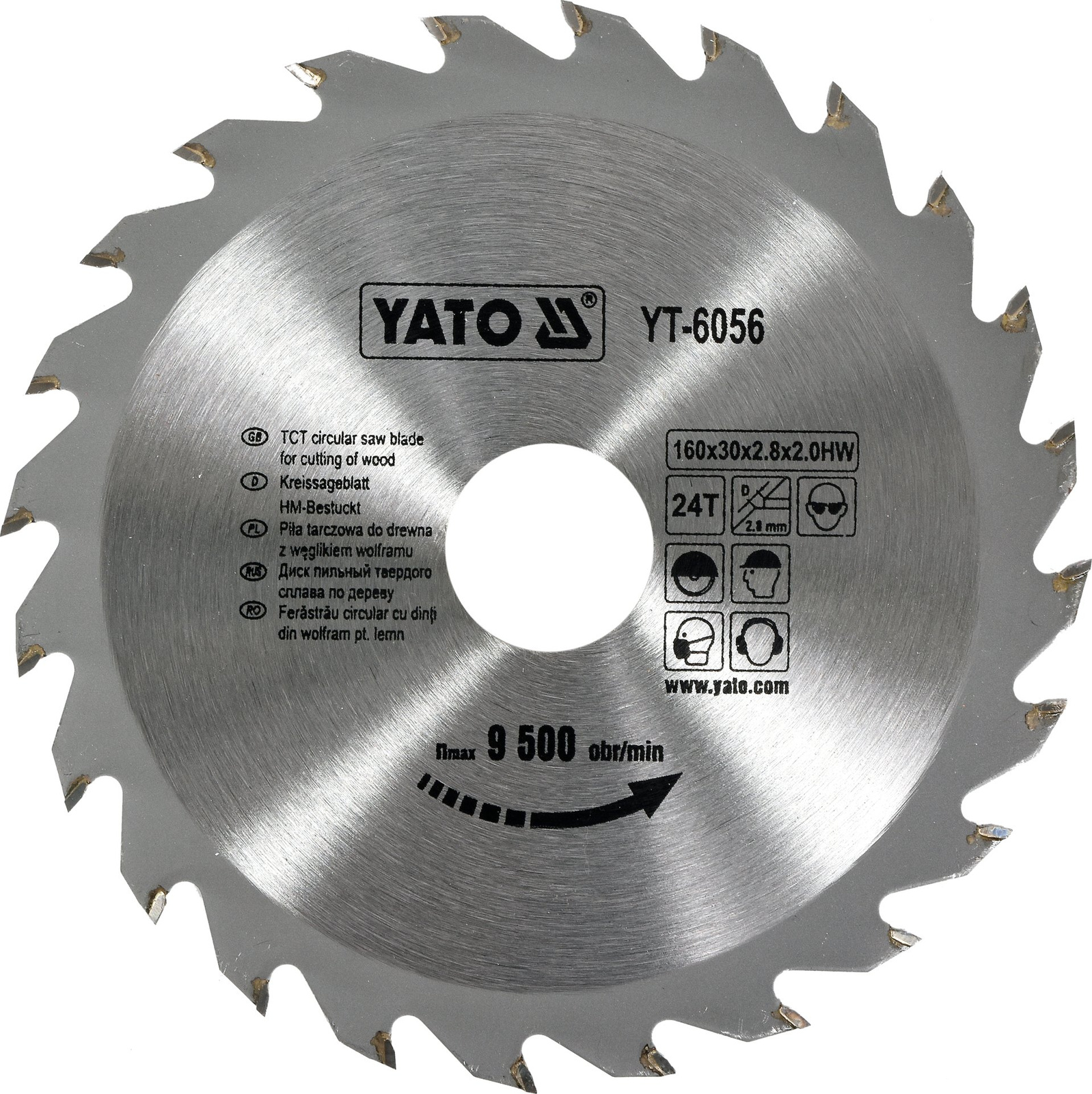 - Široký nůž Yato YT-6056 (160 mm, 24 zubů, otvor 30 mm) pro přesné řezání dřeva. Vyrobeno z odolných materiálů, zaručuje čisté a rychlé řezy, ideální pro stolní a pokosové pily.