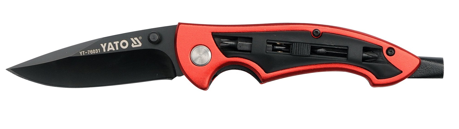 - Multifunkční zavírací nůž Yato YT-76031 s bity je nástroj pro každodenní servis, opravy a kutilské práce. Jedná se o praktický a funkční výrobek, který kombinuje funkce nože a sady bitů.