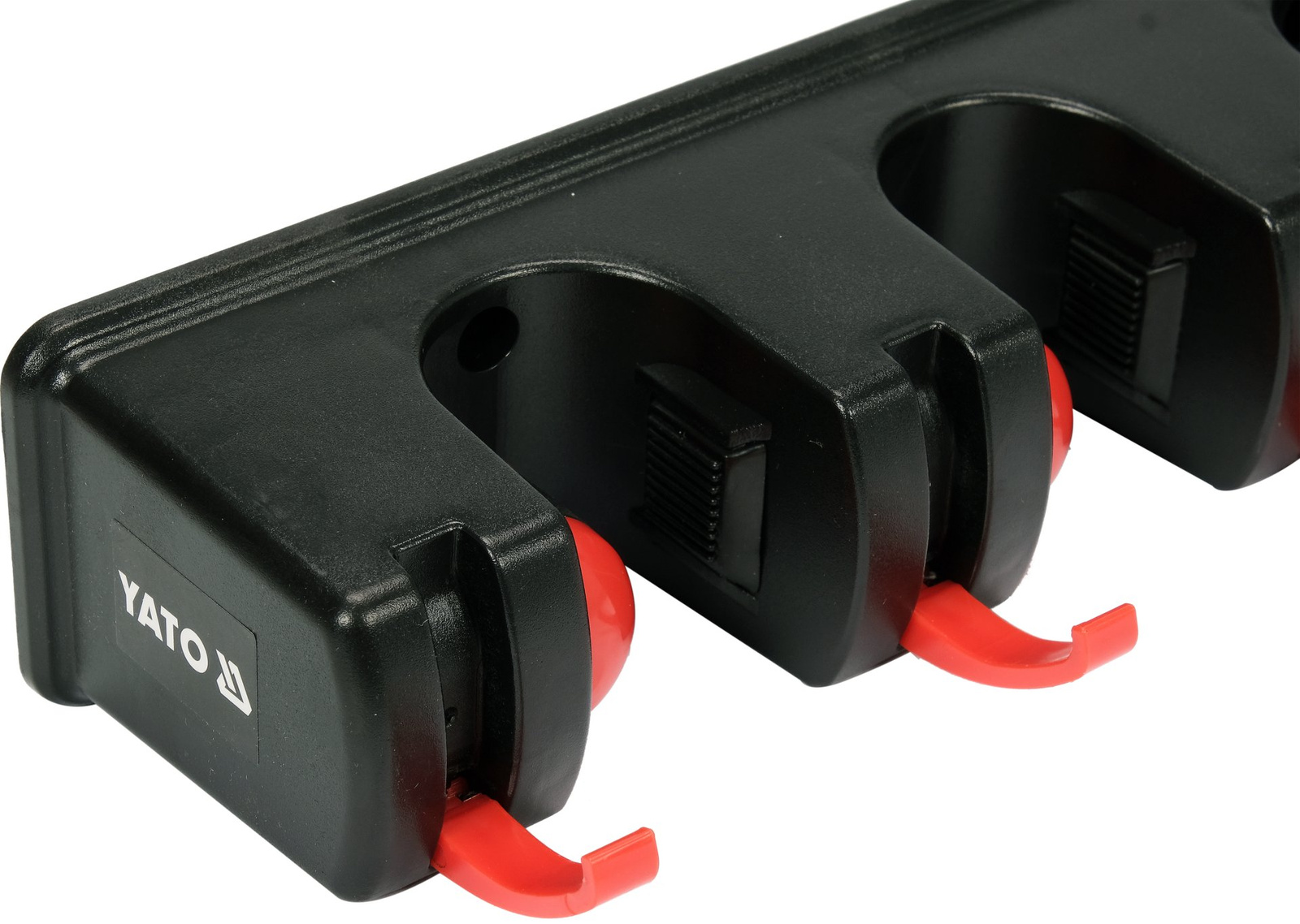 - Stojan na nářadí Yato YT-87650 se 6 držáky je praktickým řešením pro ukládání zahradního a dílenského nářadí. Robustní konstrukce zajišťuje odolnost a protiskluzové rukojeti drží nářadí pevně na místě.