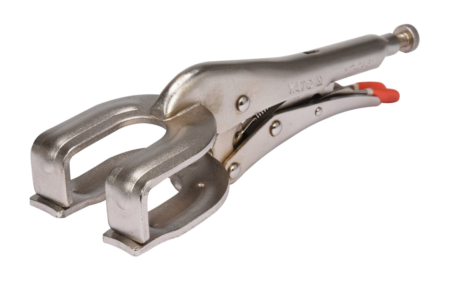 Svařovací kleště s čelistmi ve tvaru U. Celková délka 225 mm. Jsou vybaveny šroubovým nastavením otvoru, které umožňuje nastavit vzdálenost mezi čelistmi v závislosti na tloušťce uchopovaného materiálu. Uzávěr amerického typu. Povrch poniklovaný.