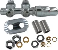 Sada "dvojčata" pro radiátory se spodním připojením a hrdly s roztečí 50 mm.