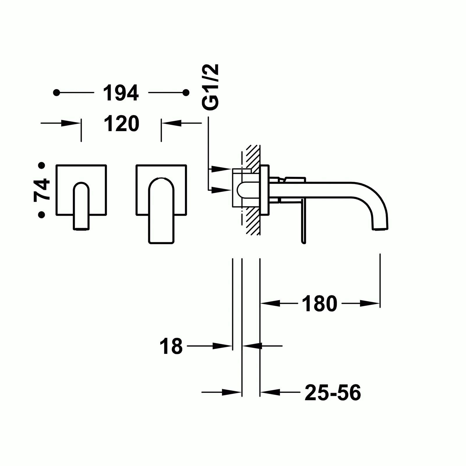 - Podomítkové umyvadlové baterie z řady Tres Loft s výtokem o délce 180 mm Hodí se k většině umyvadel. Obvykle se kombinuje s umyvadly na desku Barevná varianta: chrom nebo černá