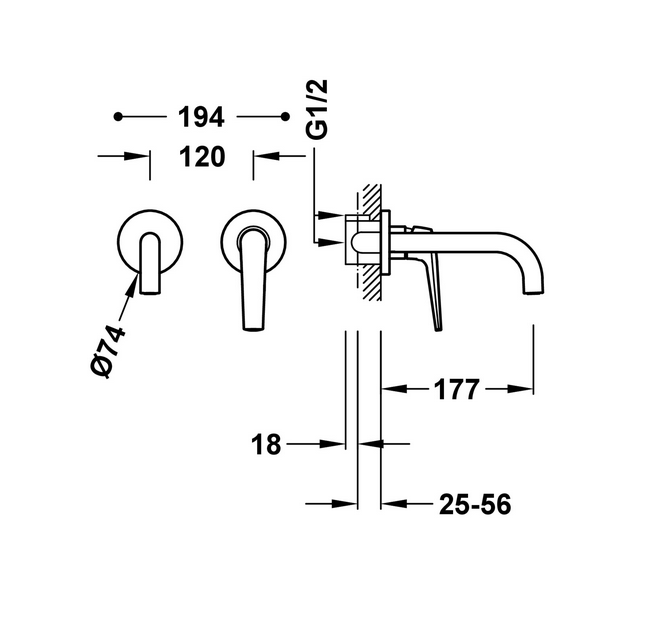 - Podomítková umyvadlová baterie z řady Fuji tres určená pro montáž na stěnu Rozsah výtoku: 177 mm Povrchová úprava: ocel Kód výrobce: 28130001AC