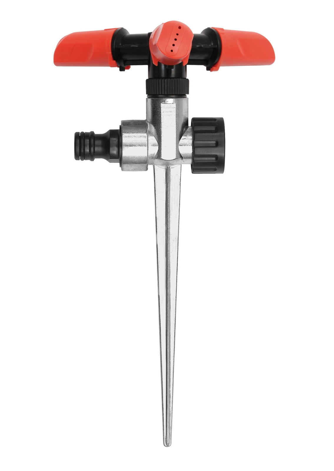 • Tři ramena vybavená přesnými tryskami se otáčejí pod tlakem vody a rovnoměrně rozvádějí vodu kolem postřikovače. Ideální pro zavlažování středně velkých až velkých ploch.