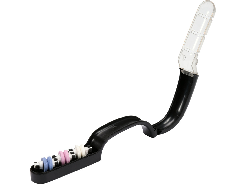 Praktický a všestranný stolní brousek na broušení kuchyňských nožů a dalších malých řezných nástrojů. Díky systému tří kotoučů umožňuje jak prvotní, tak jemné broušení.