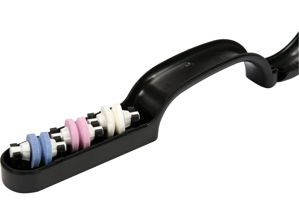 - Ruční brousek se třemi ostřícími moduly pro počáteční, jemné a dokončovací broušení. Odolnost proti vlhkosti - má nádržku na vodu v základně. Ideální pro každodenní broušení kuchyňských nožů.