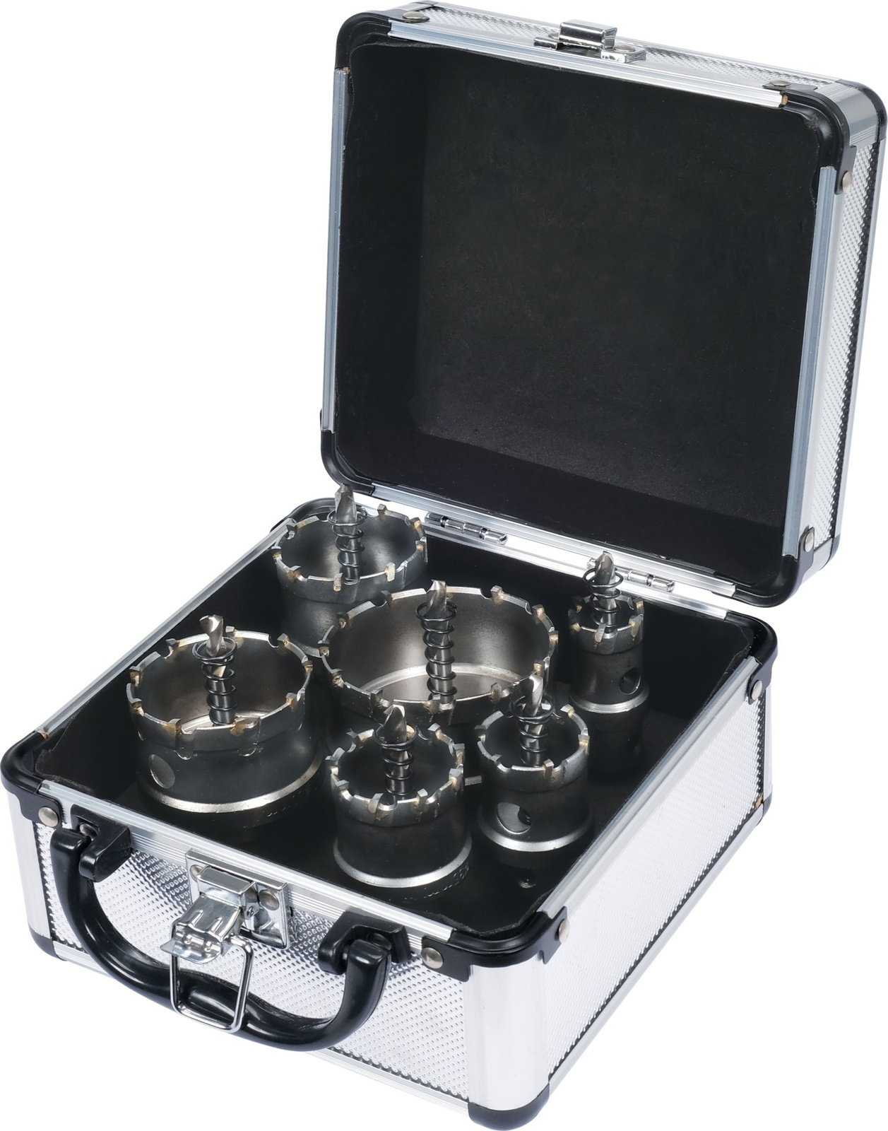 - Yato YT-44077 (6 kusů) Sada pil s karbidovým hrotem TCT pro vrtání do kovu, nerezové oceli a hliníku. Průměry od 22 do 65 mm, hloubka vrtání až 25 mm. Ideální pro dílenské a průmyslové aplikace. Součástí kufříku je.