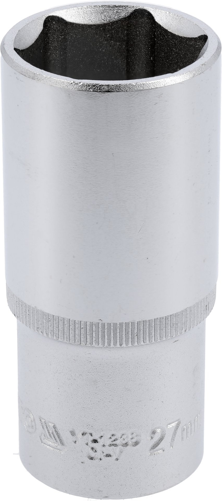- Profesionální 27mm dlouhá nástrčná hlavice značky Yato, určená pro použití s ráčnami a klíči s 1/2palcovým pohonem. Vyrobeno z vysoce kvalitní chrom-vanadiové oceli (CrV). Díky svému šestihrannému profilu dokonale pasuje na šrouby.