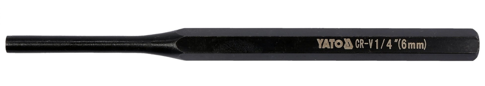 - Yato YT-47146 unášecí razník 6x150 mm z kalené oceli, ideální pro přesné vyražení čepů a hmoždinek. Robustní a pohodlné použití pro dílenské a montážní práce.
