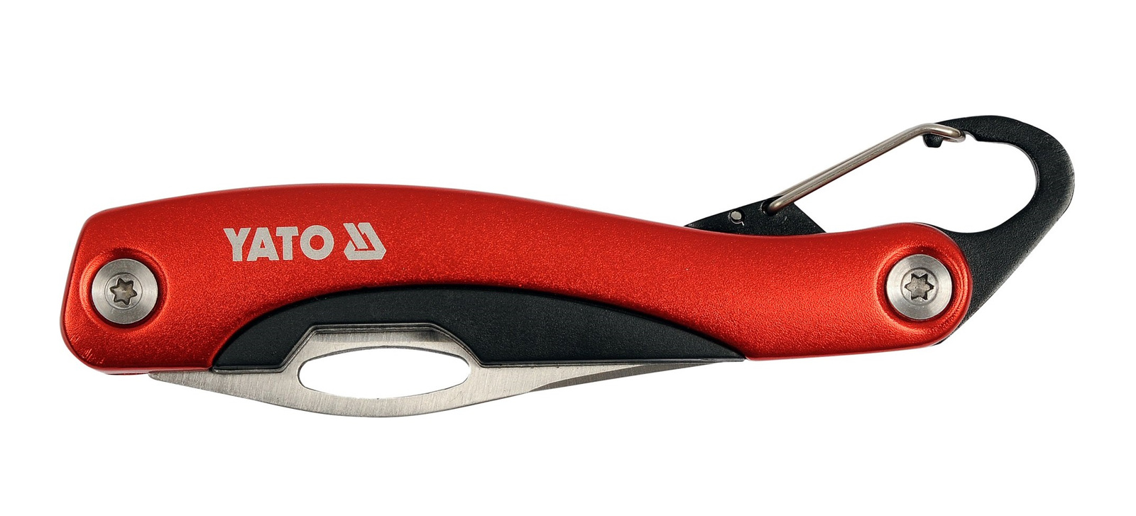- Zavírací nůž Yato YT-76050 s čepelí "bowie" (75 mm) z nerezové oceli 420 a ABS rukojetí zajišťuje bezpečný úchop. Vybavena karabinou. Délka ve složeném stavu: 115 mm, v rozloženém stavu: 190 mm. Lehký, ideální pro každodenní použití.