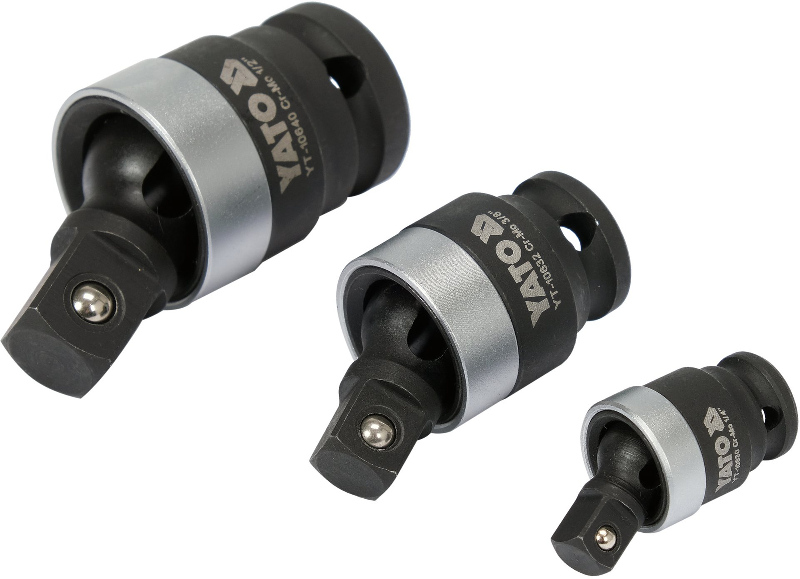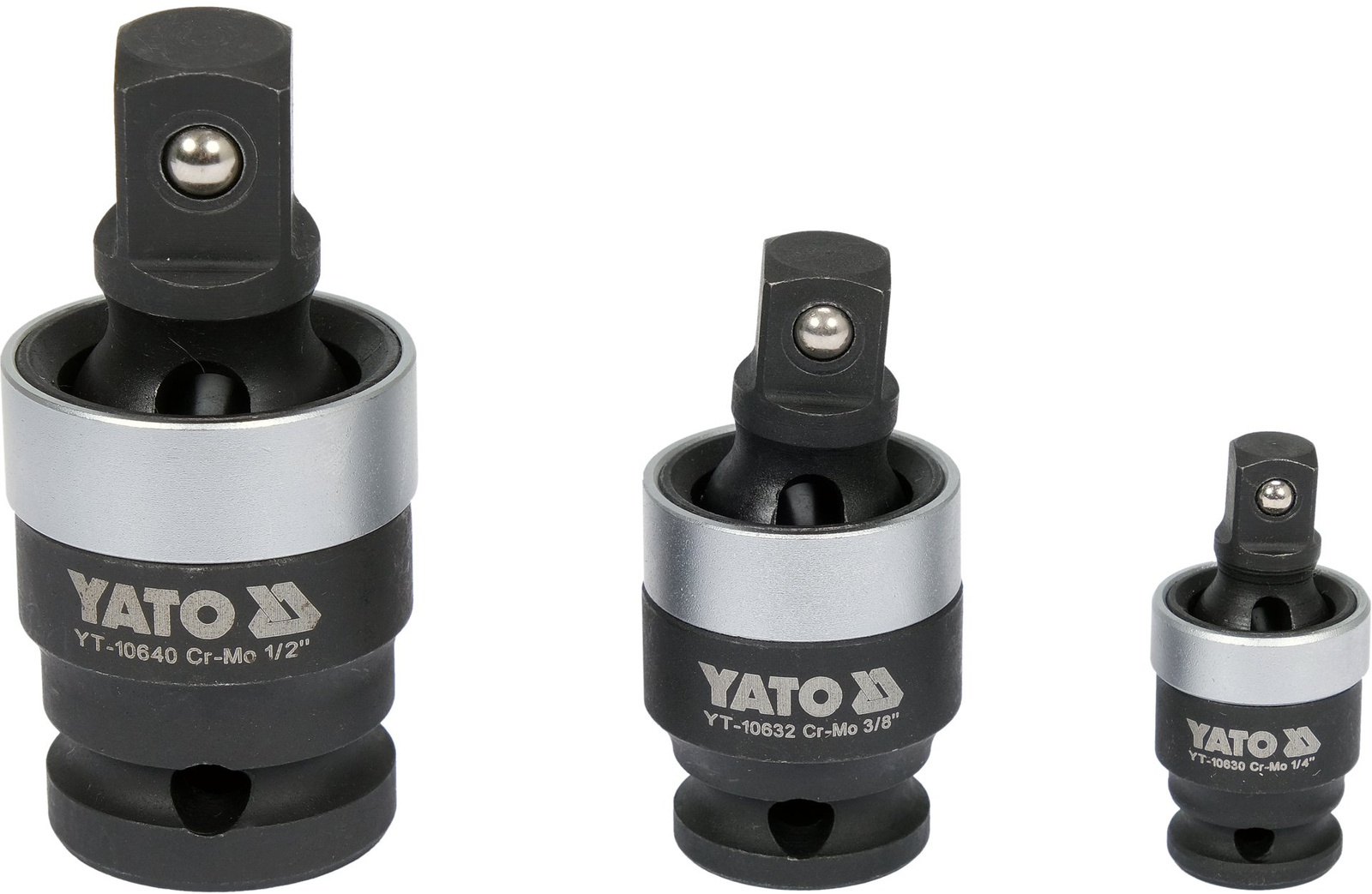 - Yato YT-10642 - sada nárazových spojů 1/4", 3/8", 1/2". CrMo ocel, antikorozní nátěr, ideální pro práci na těžko dostupných místech. Odolnost a přesnost - profesionální nástroj pro dílny a služby.